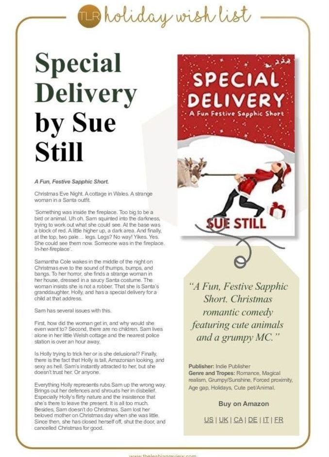 “I just finished reading your short story, special delivery. I really loved it! It was a wonderful way to start a Christmas morning.”